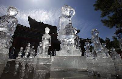 The sculptures were made from glacial melt water from the Ganges, Yangtze and Yellow rivers in Asia as a warning to the one billion people in Asia threatened by global warming. The melting Himalayan glaciers threatens the water supply of one fifth of the worlds population, say Greenpeace.If world leaders don't agree to stop runaway climate change, children of today will grow up facing a constant struggle to secure reliable access to drinking water," said Greenpeace China Climate and Energy Campaign Manager Yang Ailun.